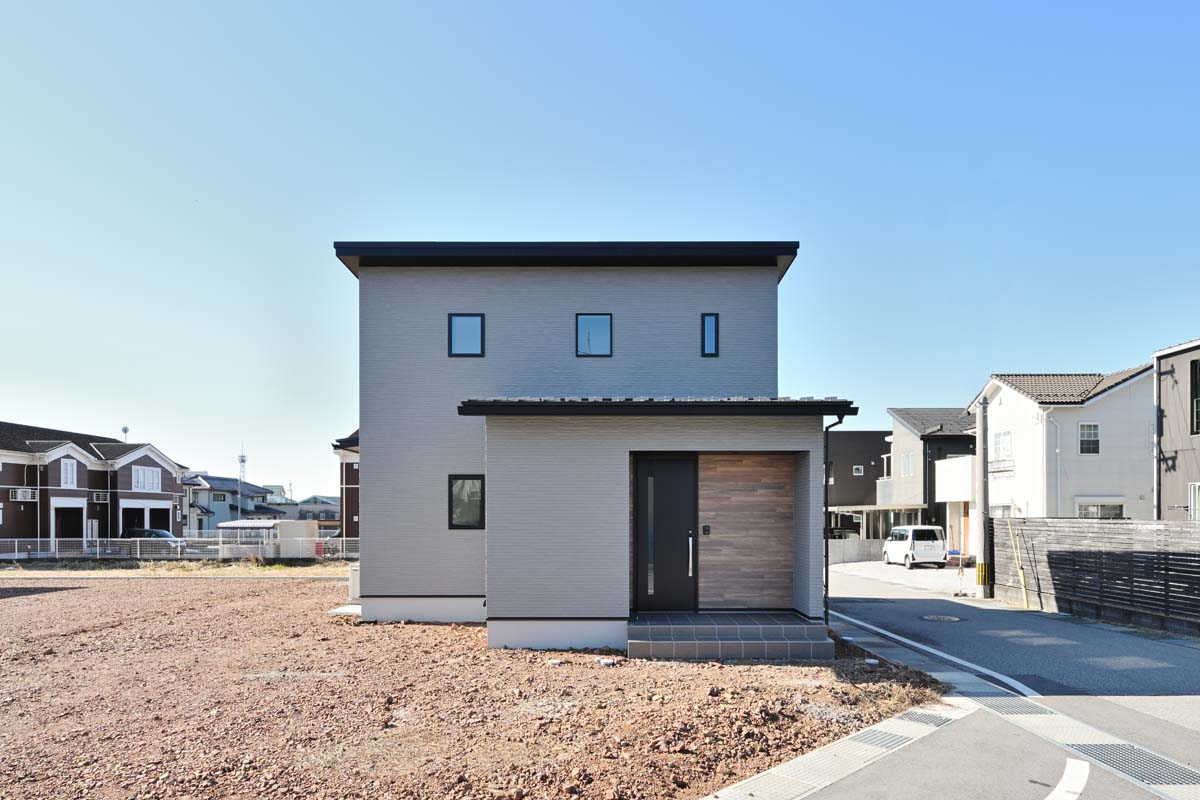 その想いをかたちにしたのが、落ち着いたグレーを基調に木目のアクセントを加えたシンプルモダンな外観です。街並みに自然と溶け込みつつ、堂々とした存在感を放ちます。大きな窓からは光が差し込み、利便性の高い立地でありながらも道路からの視線をさりげなく遮る配置計画、家族が安心してくつろげる暮らしを実現しました。