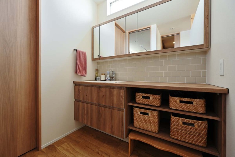 なかでも洗面所には頑張ったみたいで、朝の準備時間に混みあわないようたっぷりと広さを設けてもらいました。