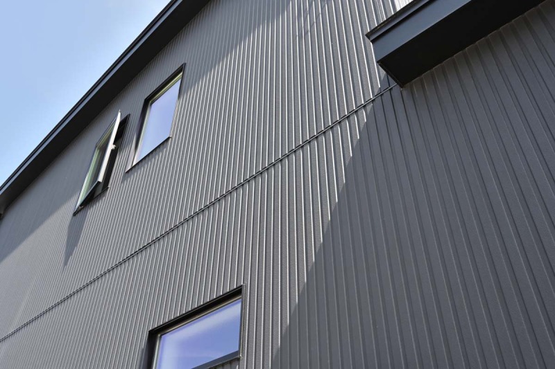 私の担当した外装は、縦貼りのサイディングスタイリッシュなイメージになるよう、落ち着いたクールな色合いのでまとめました。ちょっとカッコイイ感じでしょ?