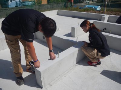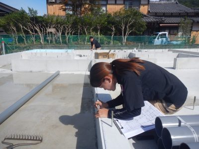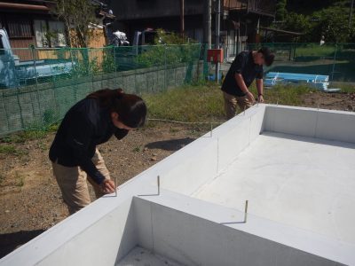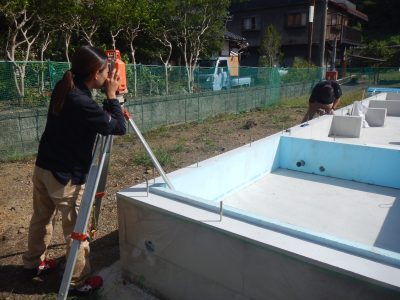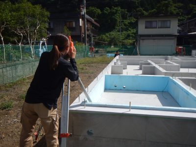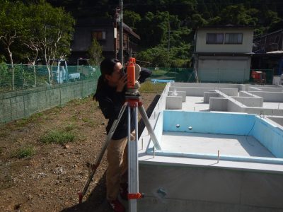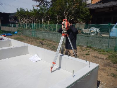 基礎天端の墨出しが終われば、基礎天端のレベル測定です。
