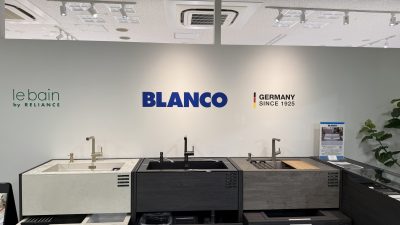 ▼ドイツ製のキッチンや、めずらしい水栓が展示