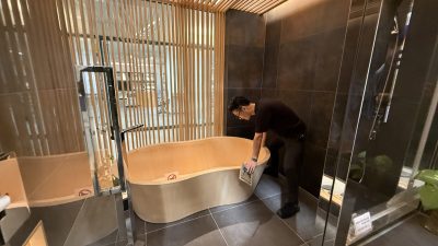 ▼ヒノキ風呂の展示(憧れますね笑)