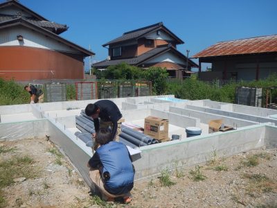 ↓ 基礎が完成して墨出しに伺ったのは真夏の暑い日でした。