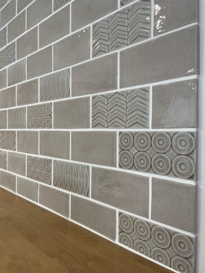 カップボード上のタイルです。いろんなデザインを入れて貼るのはセンスが問われるところ・・・