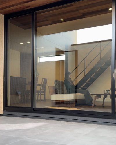 LDK天~中庭の軒の素材が揃えられており、外とのつながりが開放感を生み出しています。