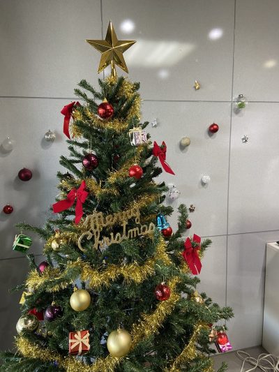 本社の玄関ホールにクリスマスツリーを飾り付けました🎄