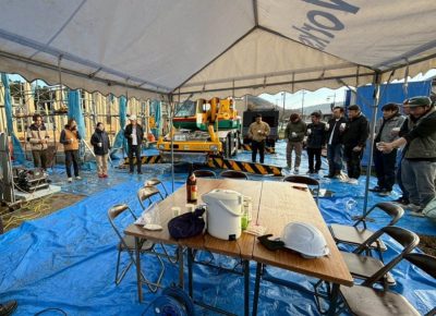 朝礼の時は現場監督が挨拶をさせていただくのですが、毎回、緊張します!