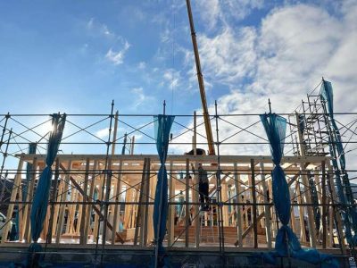 この日は、とっても良い天気で最高の上棟日和でした☀️