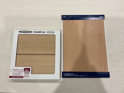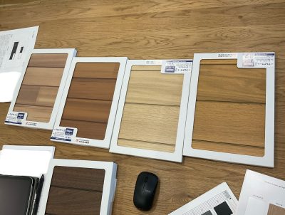 木目の色は何にするかをコーディネーターと営業さんで多数決。