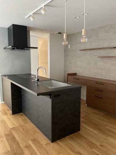 S様邸は外観はベース黒色は外壁、アクセントで木目が入っています。