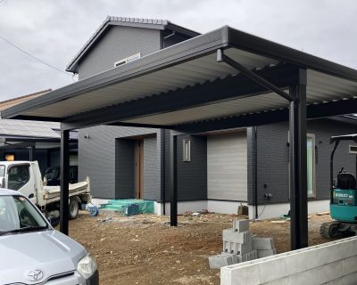また、住宅と同時にカーポートをご依頼いただきました。 カーポートの施工も順調に進んでおります。 最初のプランをご提案させていただいてから10カ月、まもなくお引き渡しです。