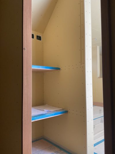 せっこうボードが貼られると、お家の輪郭がぐっと見えてきます。👍