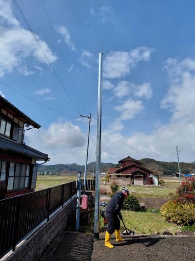 工事中に使う電気と、本設の兼用ポールになりますので、先に工事を行いました。
