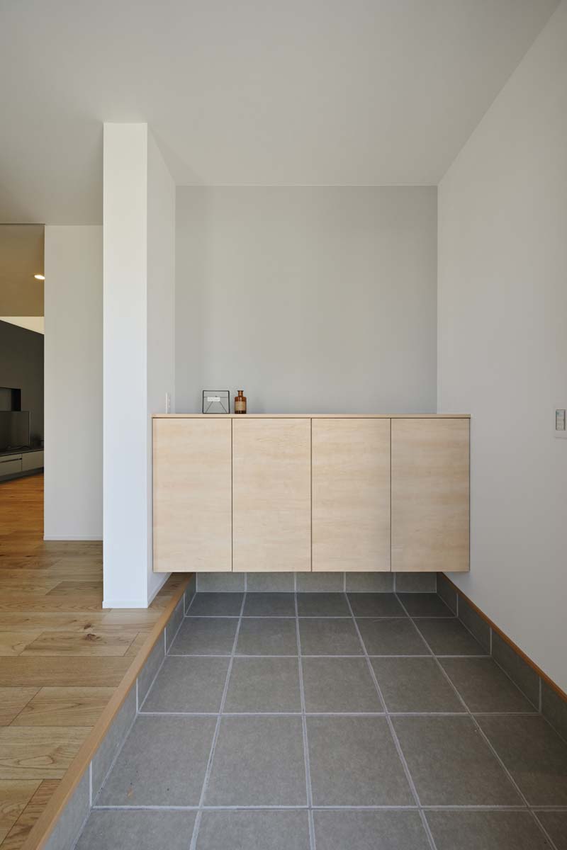 今回は「愛車を守るガレージを建てたいが、開放感も大切にしたい」というご要望に応え、広い角地を活かした住まいを実現しました。建物を幅いっぱいに配置しながらも視線が斜めに抜けることで、窮屈さを感じさせない開放的な空間を実現。さらに、耐震等級3を取得し、安心して暮らせる住まいとなっています。