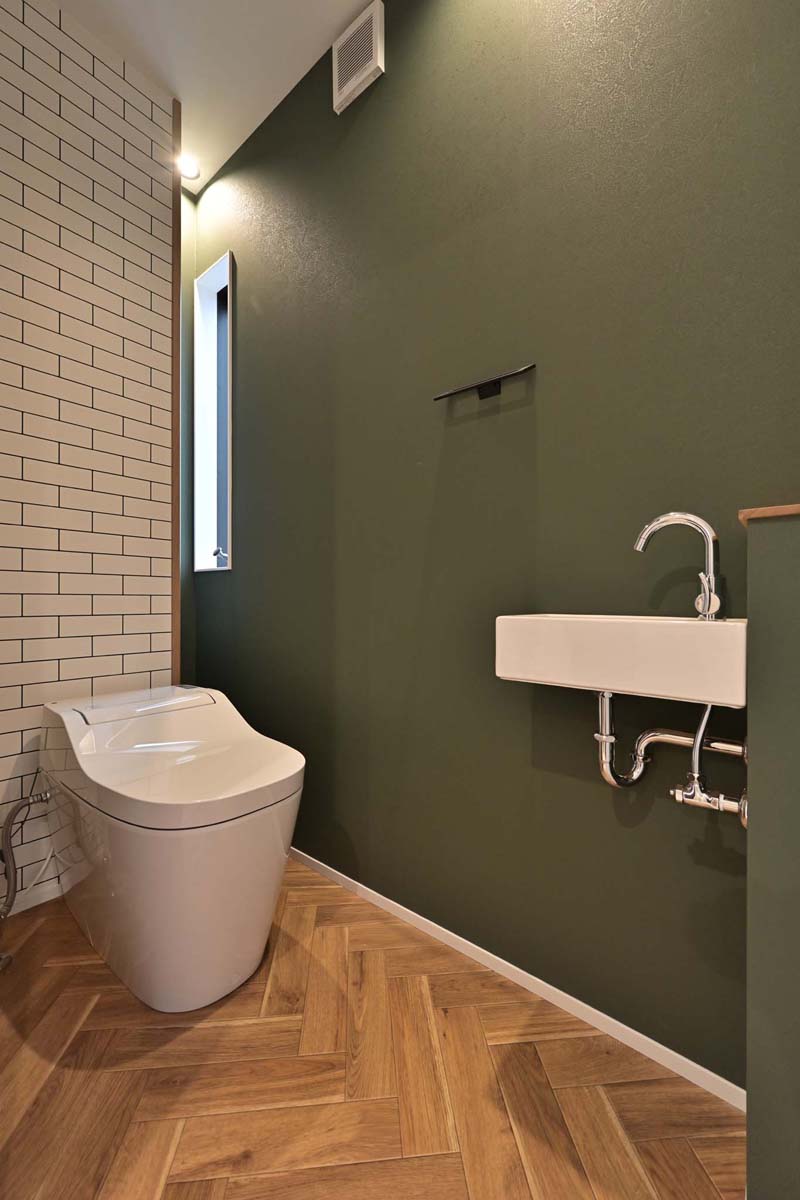 キッチンの腰壁には木製の収納棚を設置するなど、色や収納スペースにも一工夫しました。