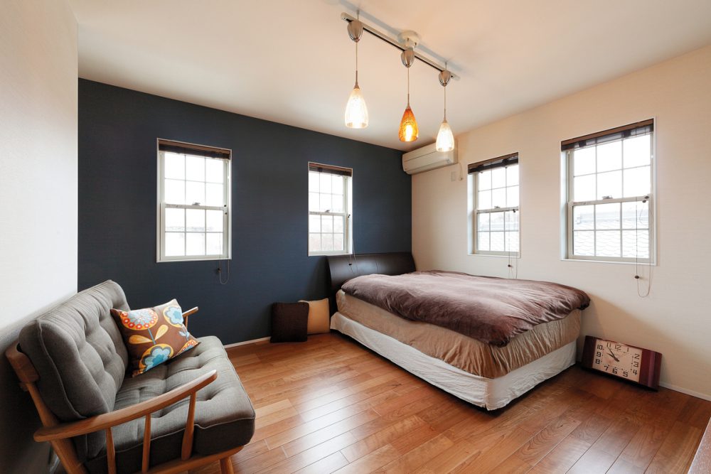 「かわいらしさ」「大人なレトロ」は、2階の寝室や子ども部屋のインテリアにも求めました。窓を何枚も連ねて採光性を高め、明るさを保ちます。バルコニーと洗濯ルームは隣り合わせの間取り。「家事を少しでも楽に」との思いで、動線ゼロの設計を実現しました。