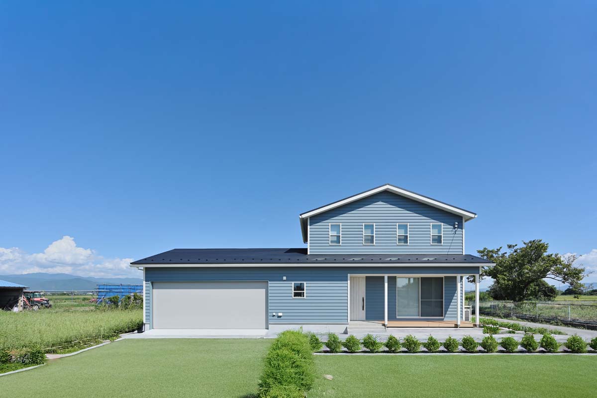 相性抜群のアーリーアメリカンテイストの外観とインナーガレージの組み合わせです。