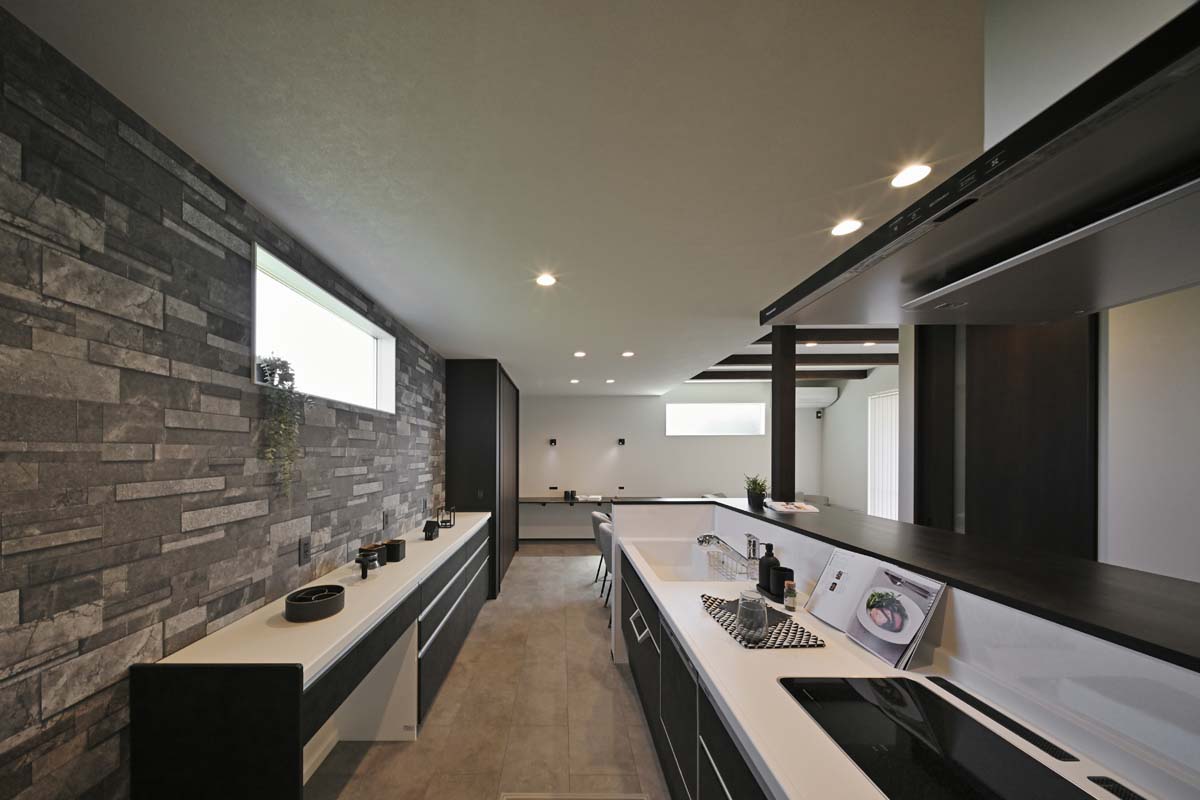 家事をしながらリビングやダイニングに目が届く設計で、家族とのつながりも感じられるキッチンです。