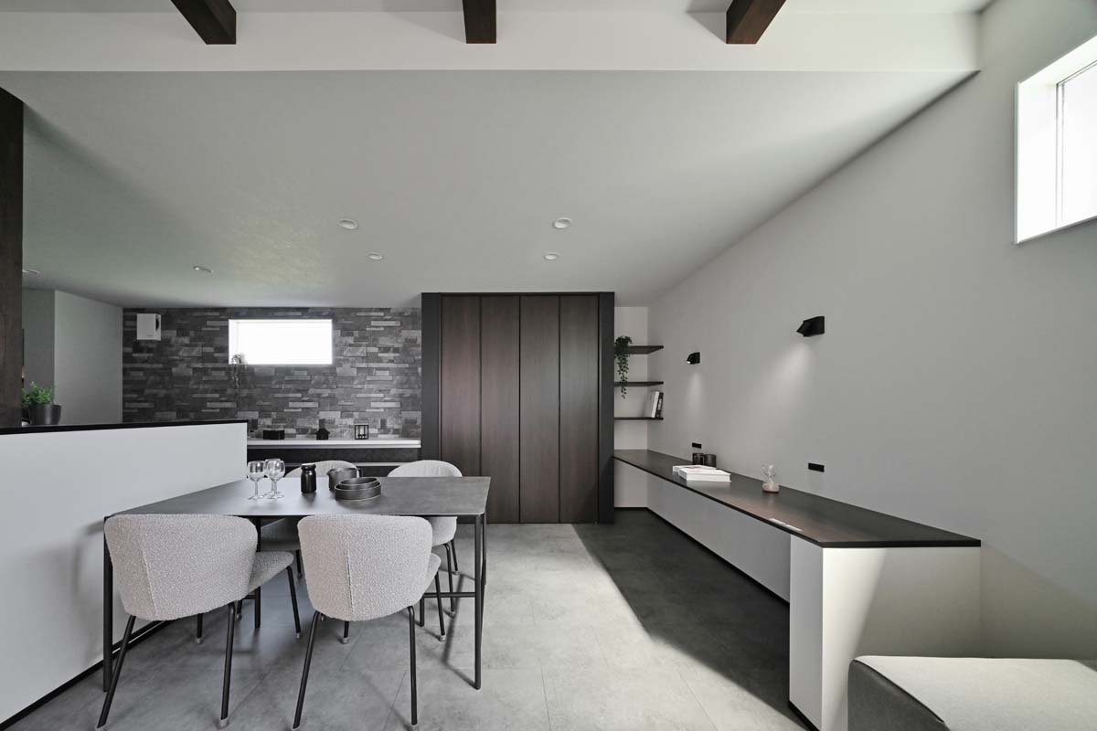 リビングの一角には、ご夫婦それぞれの趣味を楽しめるカウンタースペースを設けました。 思い思いの時間を過ごせるマルチな空間です。