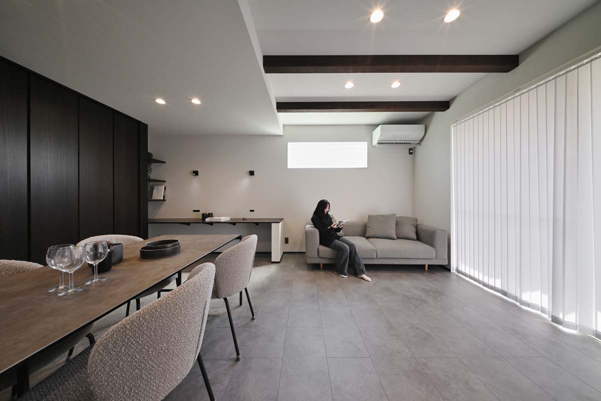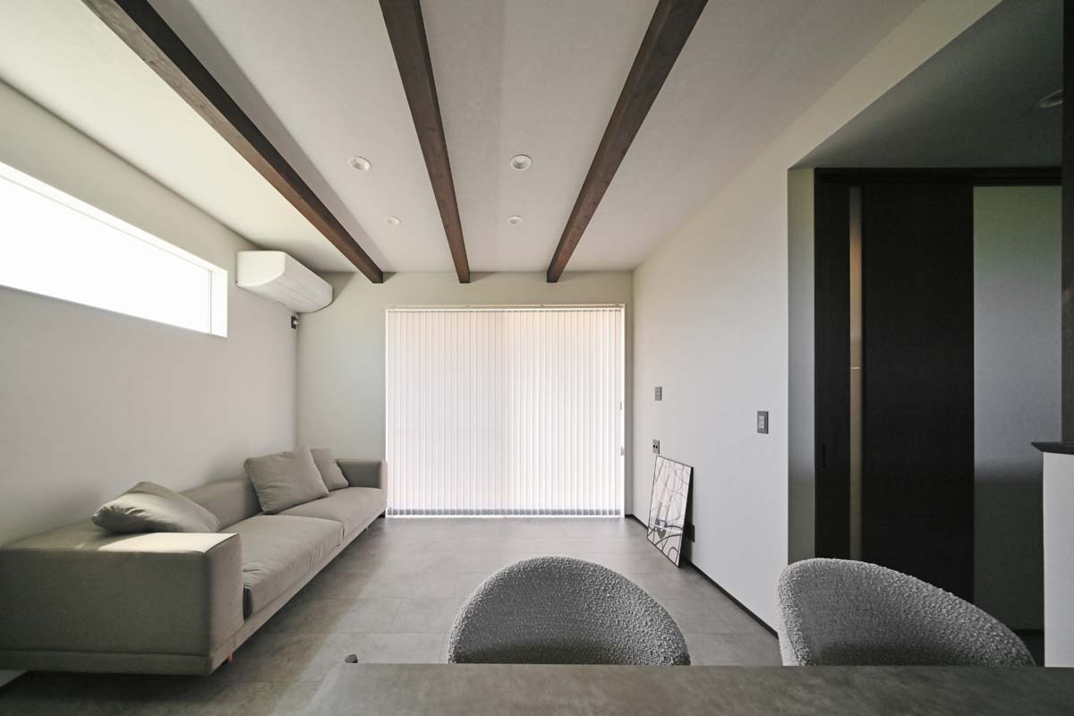 梁のリズムと大きな窓が広がり、毎日が特別になる居心地をつくります。