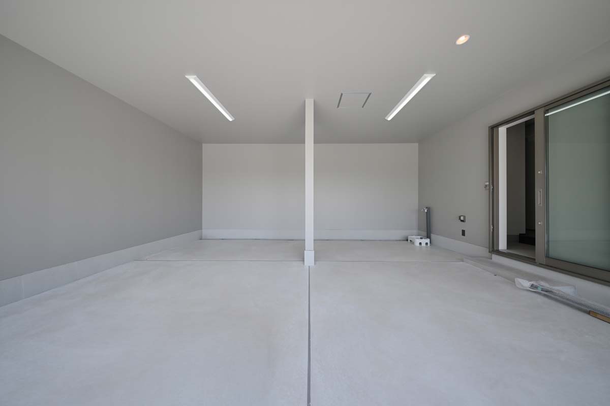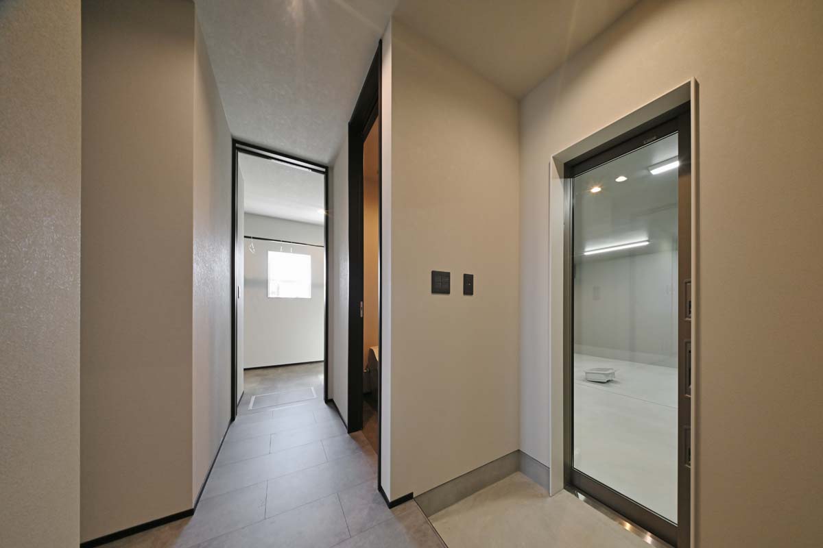 屋内直結のガレージ動線で、車から降りてすぐに室内へ。