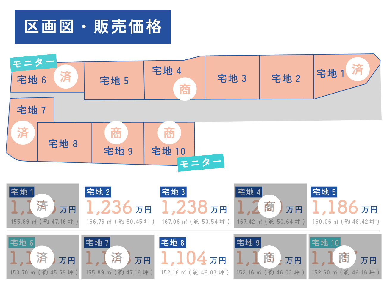 宅地6・宅地10は、弊社モニターハウス募集で建築いただきますと 990万円 でのお得な価格でご購入いただけます。