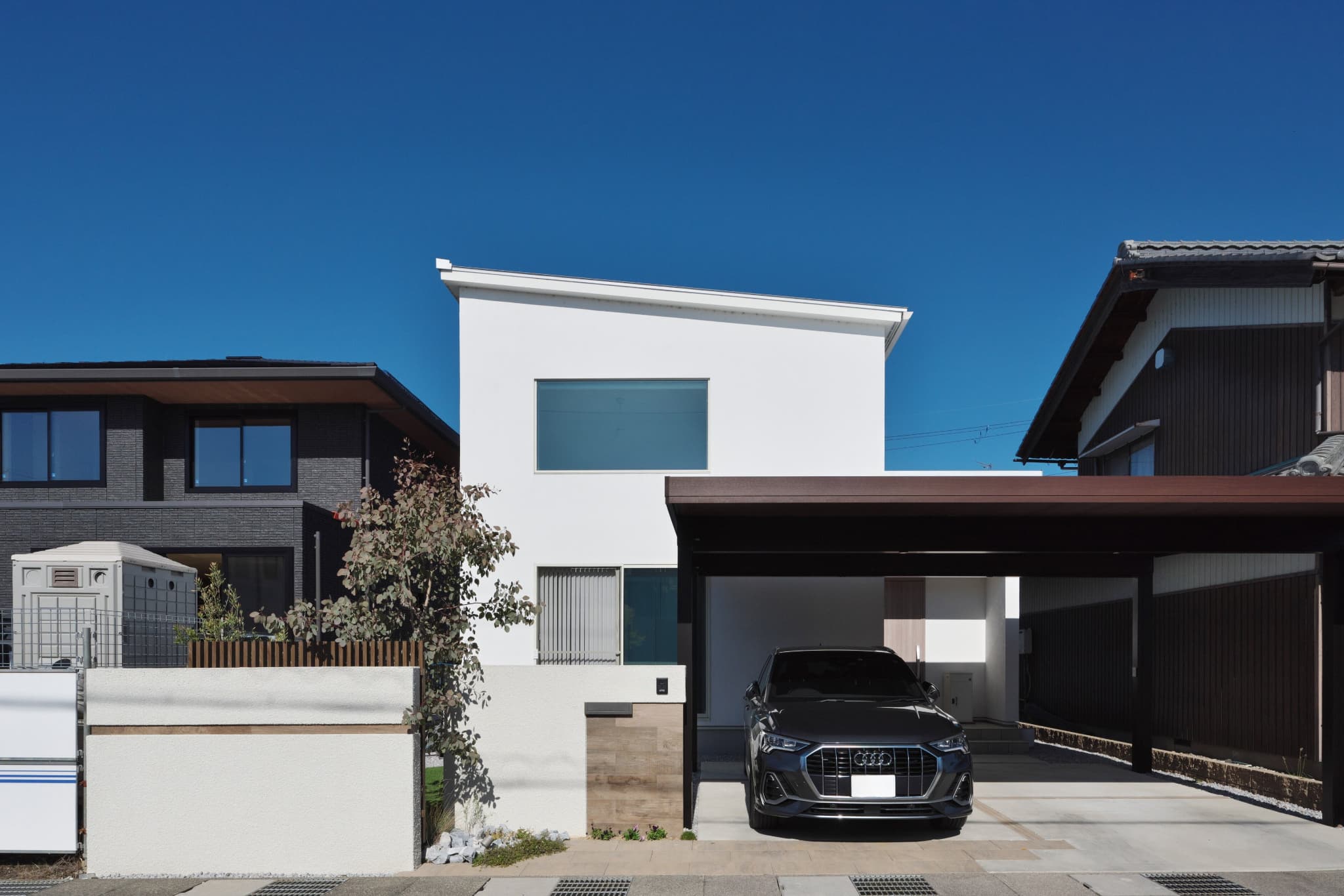 外壁は白ですが、撥水効果のある塗り壁にしたことで一年半経っても綺麗なまま。とても気に入っています。